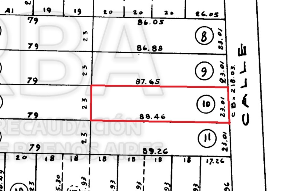 Frente del terreno: 23 m2